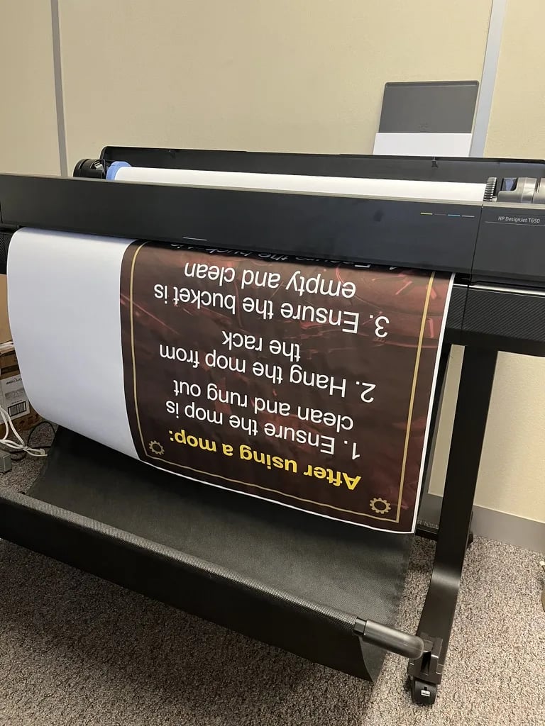“The poster printer has really helped improve our communication with our community! We have poster stands that we set up in the carpool loop that help a lot!”