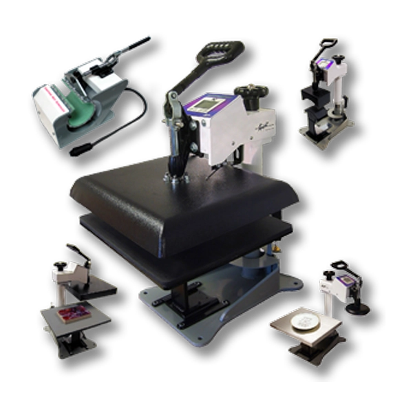 Swap out platens quickly and safely to press t-shirts, mugs, caps, tiles, plates, tote bags, puzzles, ornaments, and more. -