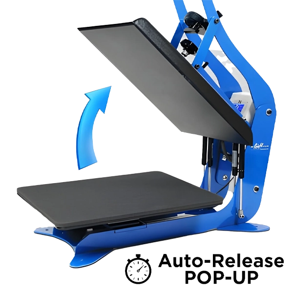 The Digital Knight 16×20 Clamshell Auto Popup Press combines advanced automation with classroom-friendly ease of use, making it one of the best heat presses for schools. Its auto-release feature eliminates the need to constantly monitor pressing cycles, giving teachers and students more efficiency and safety in the classroom.
