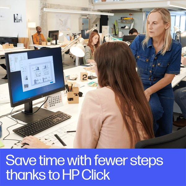 Streamline your printing process with HP Click, minimizing steps and preventing errors with its print preview feature. Safeguard your printer and data effortlessly from cyber threats with HP Wolf Pro Security. Keep focused with the HP app, enabling device management and printing from anywhere via your mobile or tablet. Foster collaboration by sharing drawings with colleagues from the easily accessible front-loading scanner, no matter their location.