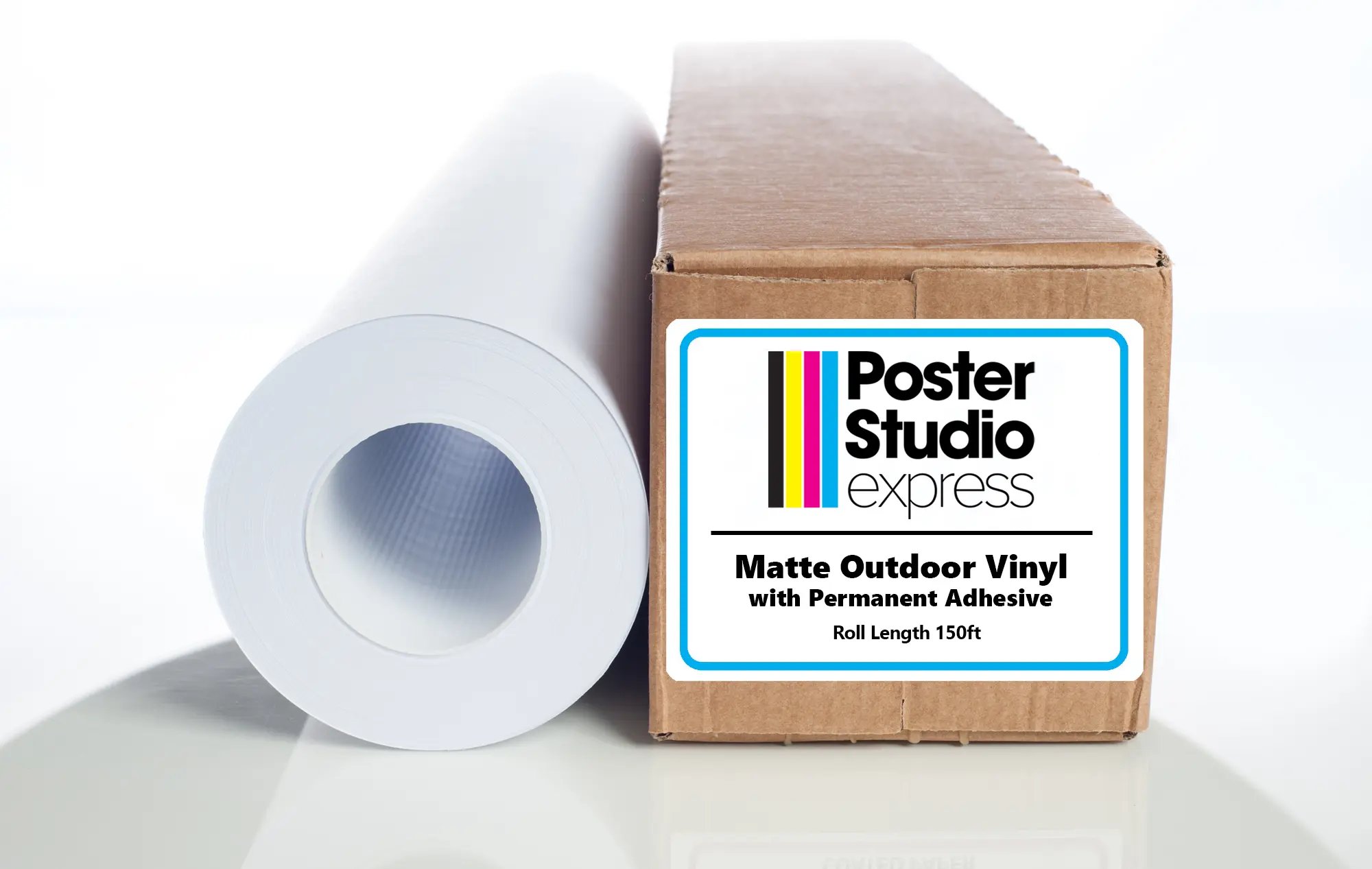 Elevate your outdoor signage with our Matte Outdoor Vinyl with Permanent Adhesive. Superior protection from the elements, and a permanent adhesive ensure quick, easy mounting on any outdoor surface. (Studio Packages only)