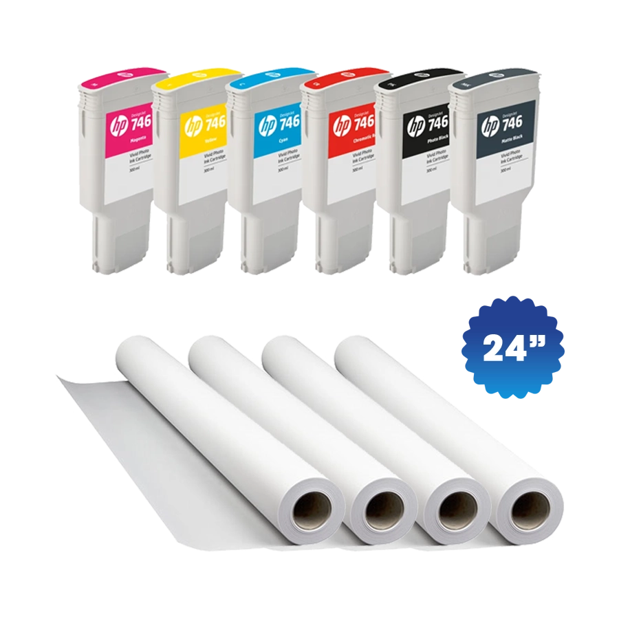 - 4 – 24″ x 150′ Coated Paper Rolls